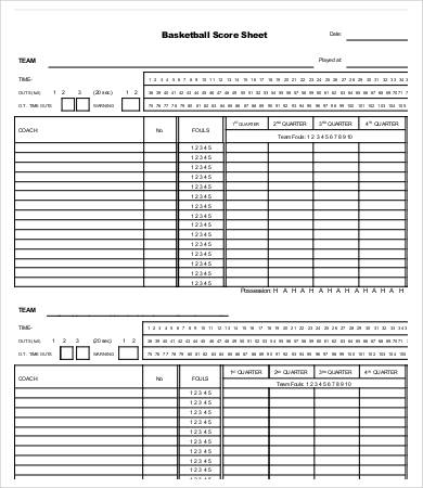 Basketball Scoring Sheet Printable