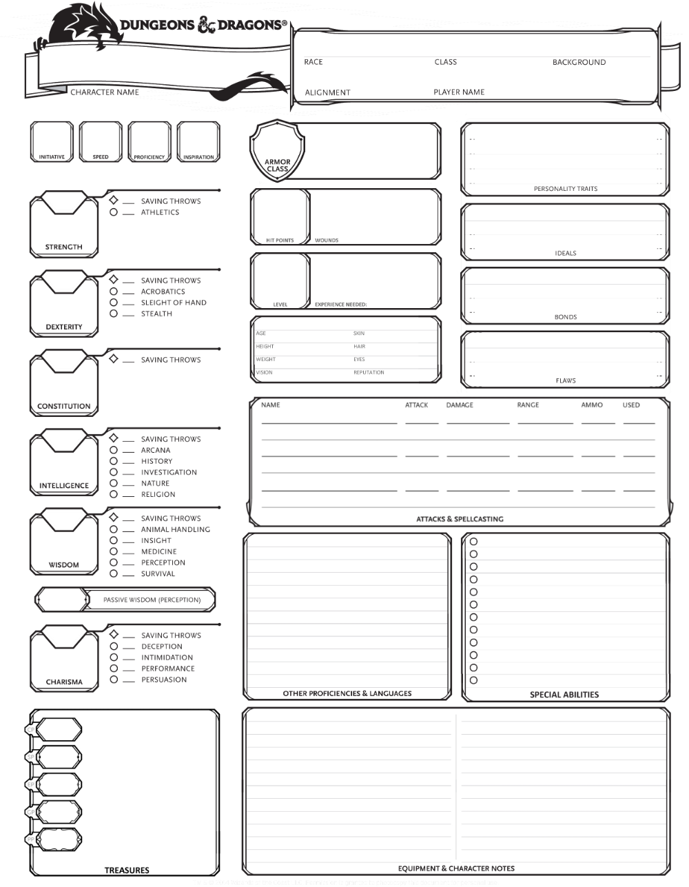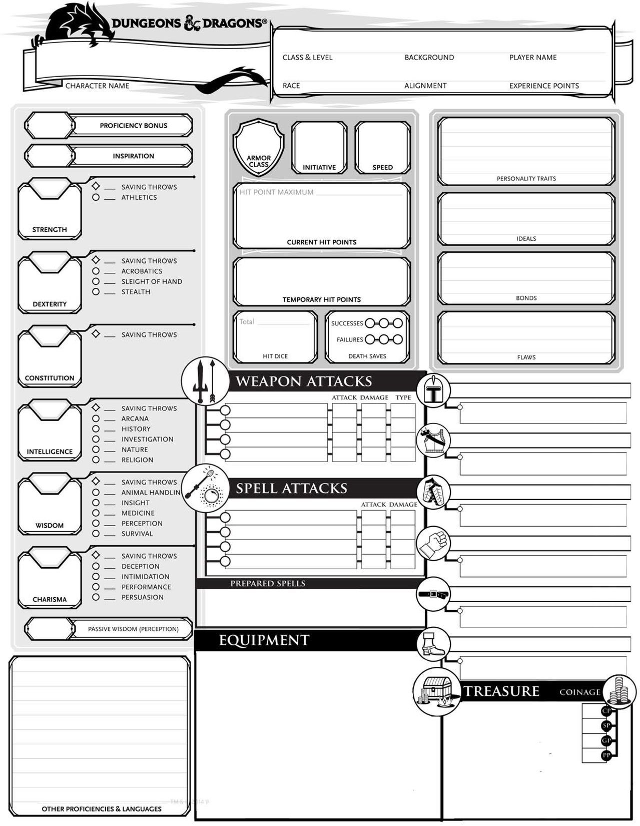Download and Print Dungeons And Dragons Printable Character Sheet