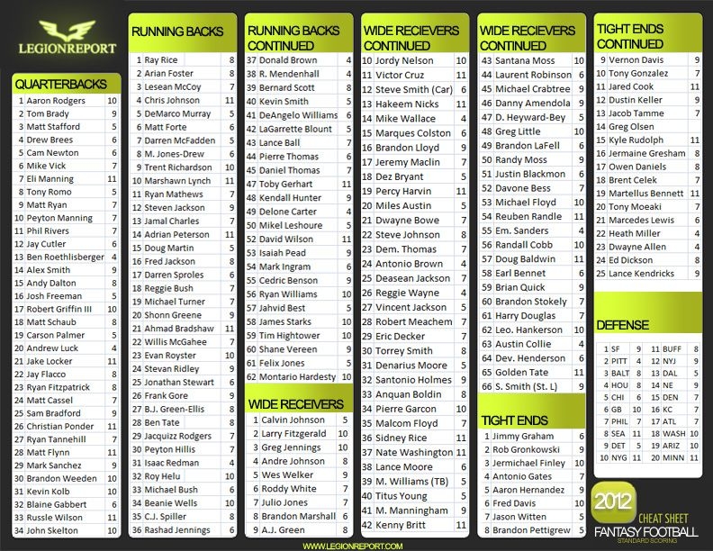 Printable Fantasy Football Cheat SheetPrintable Fantasy Football Cheat Sheet
