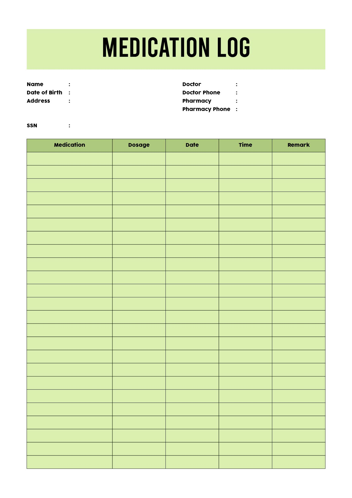 Free Printable Medication Log Sheet