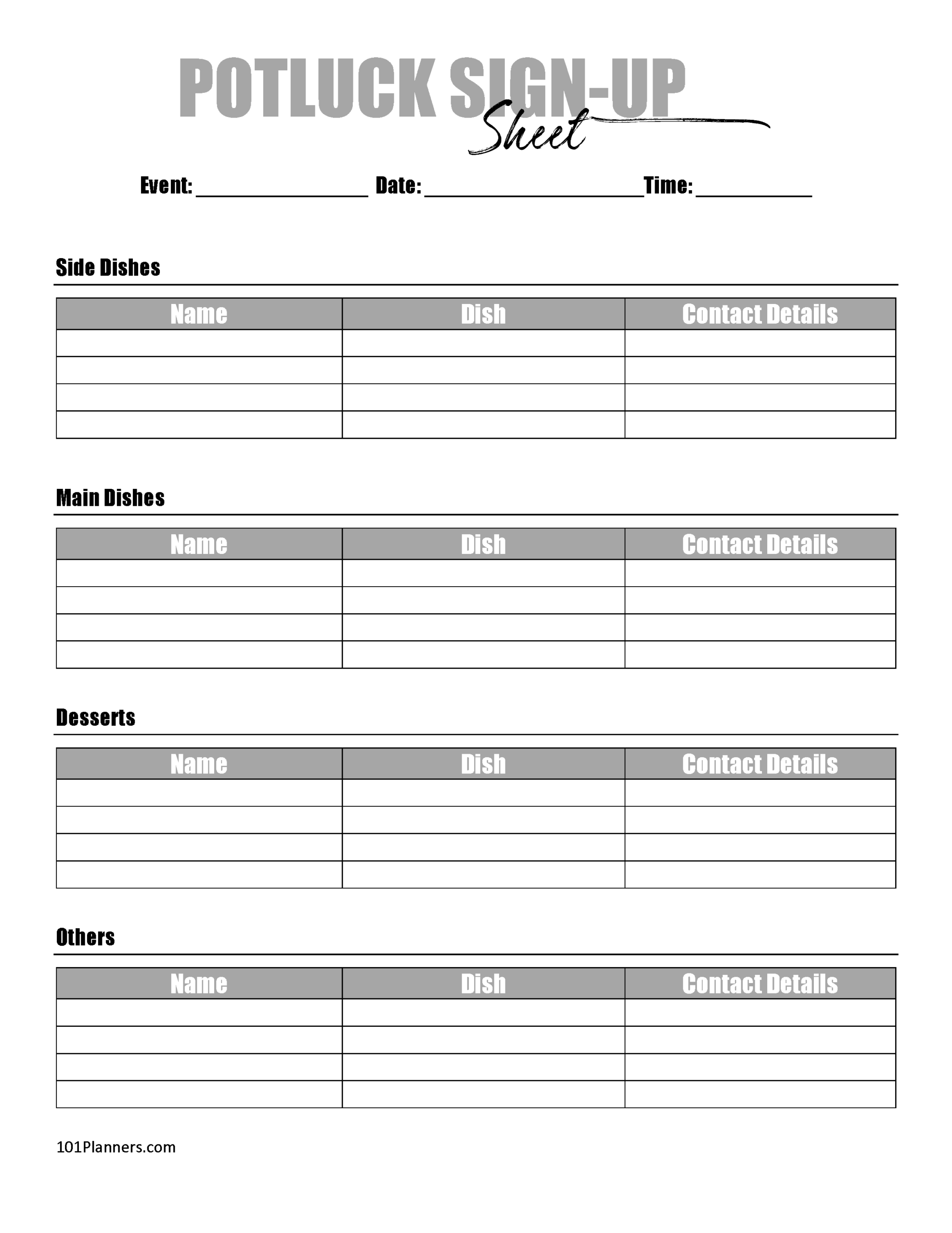 Quickly Access and Print Free Printable Potluck Sign Up Sheet Template