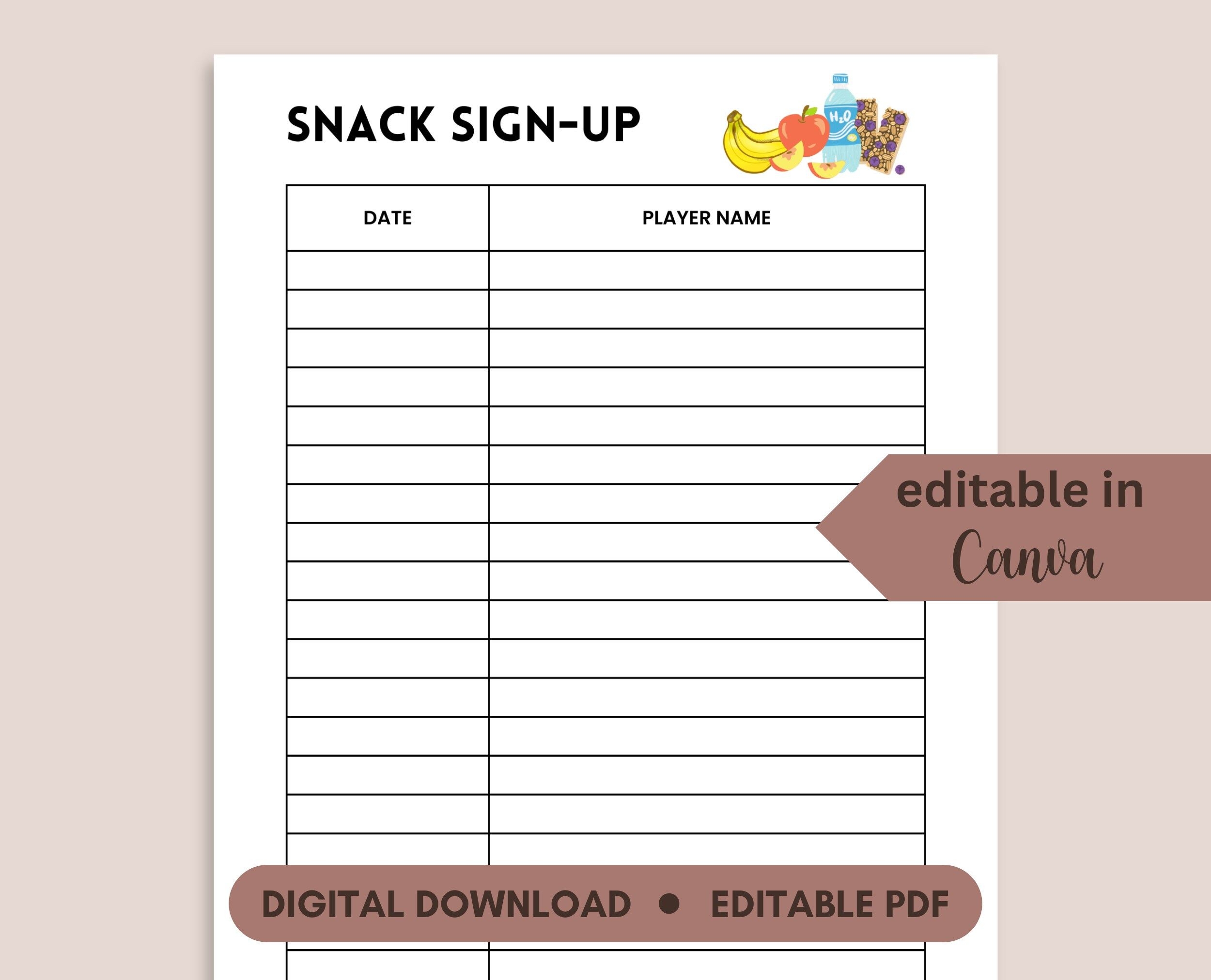 Editable Printable Snack Sign Up SheetEditable Printable Snack Sign Up Sheet