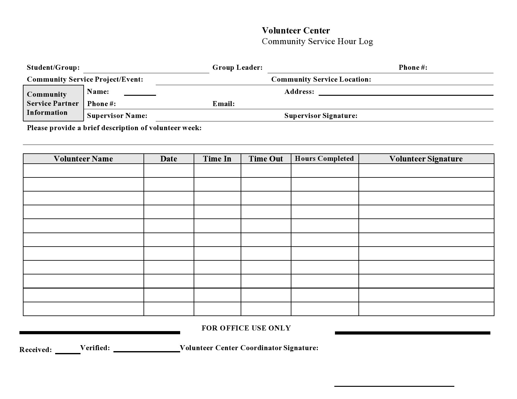 Free Printable Volunteer Hours Log Sheet
