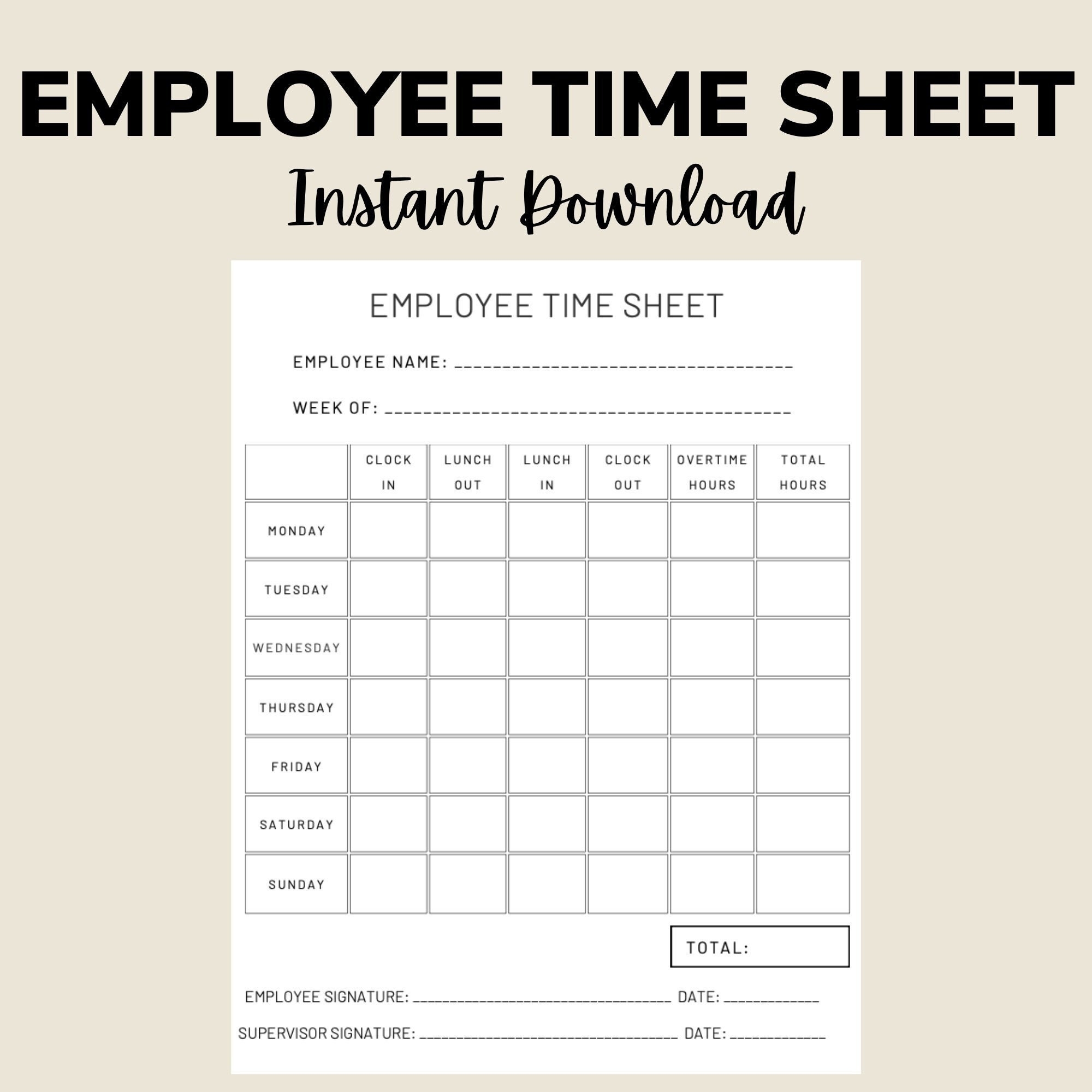 Free Printable Work Time Sheet