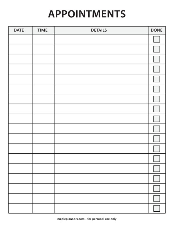 Whether you’re a busy professional or a student trying to juggle multiple responsibilities, Pdf Free Printable Appointment Sheets can help you stay on top of your schedule. These sheets come in various formats, such as daily, weekly, or monthly layouts, allowing you to choose the one that best suits your needs.