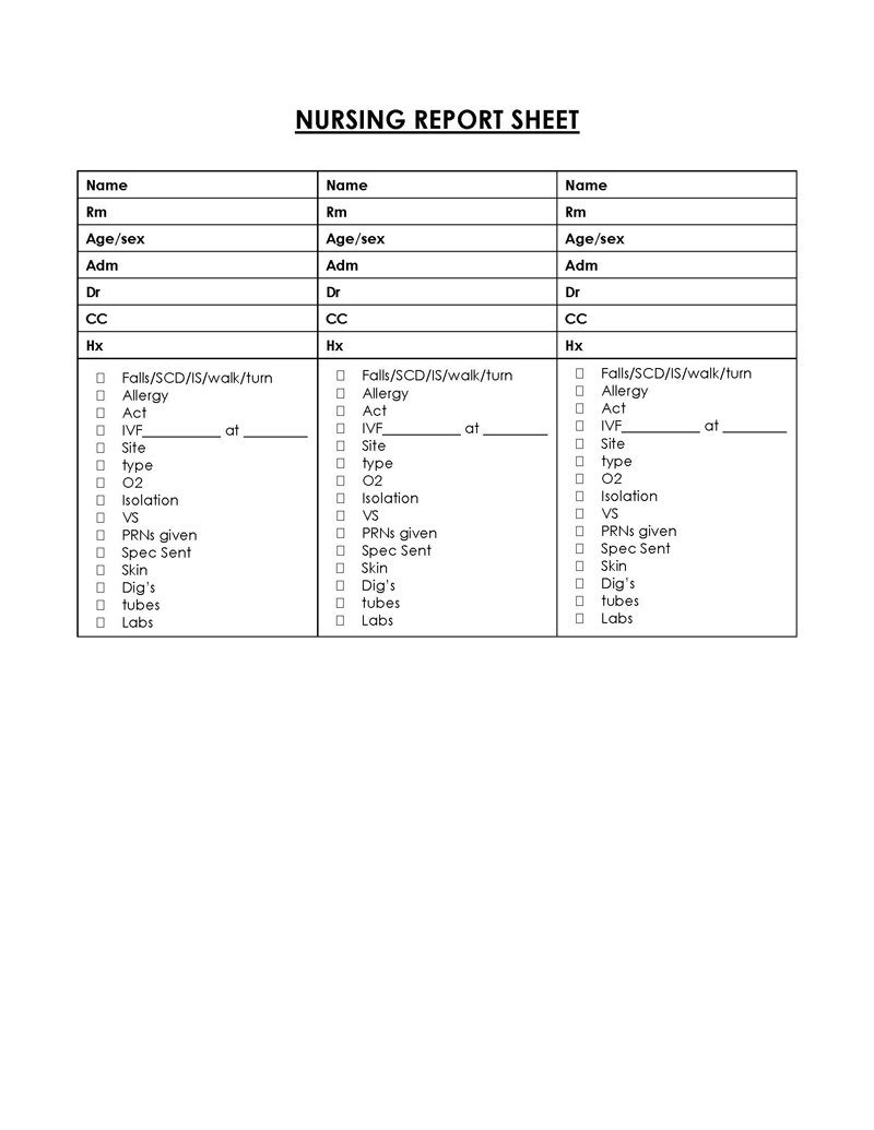 Printable Nursing Report Sheet