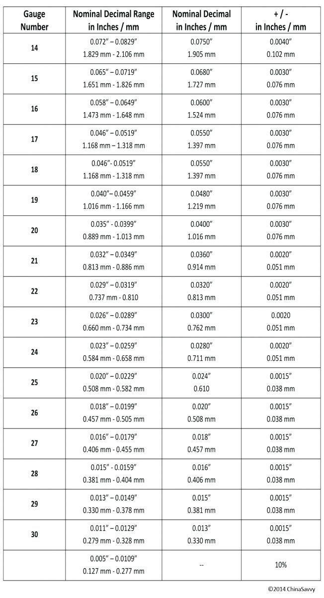 Quickly Access and Print Printable Sheet Metal Gauge Chart