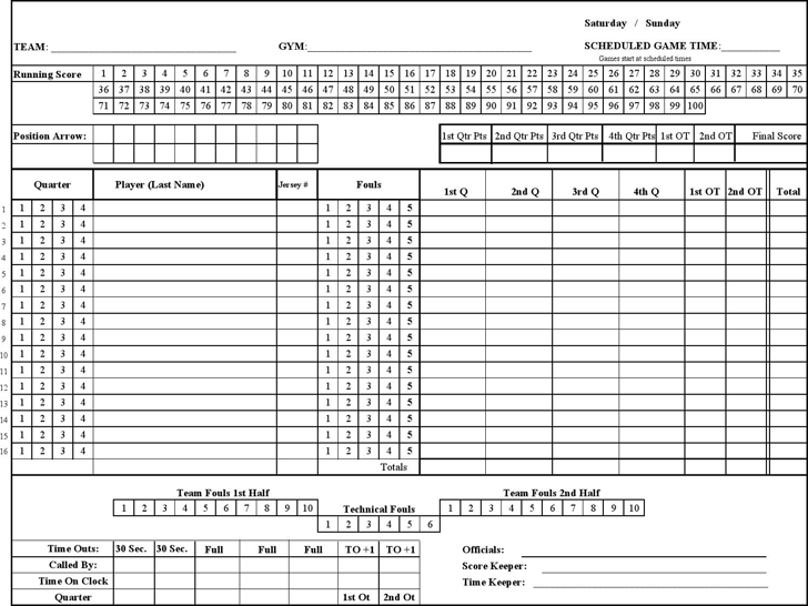 Printable Stat Sheets For Basketball