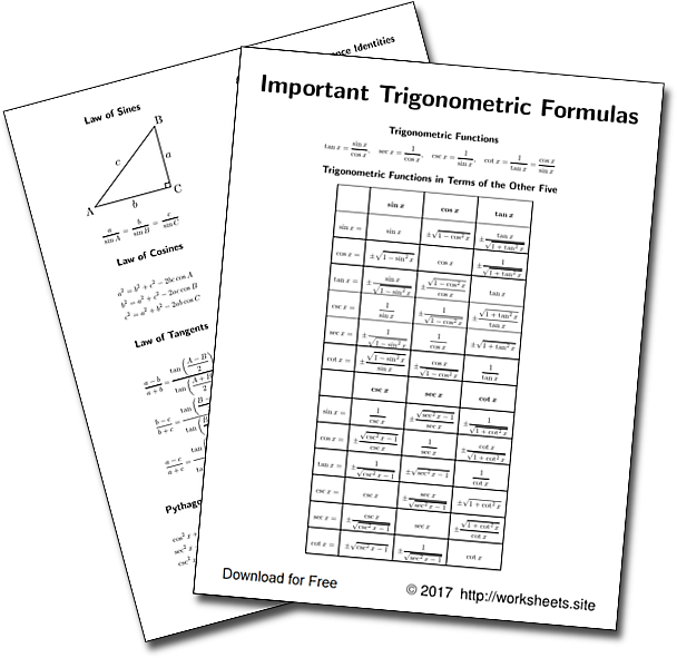 Get and Print Printable Trig Cheat Sheet