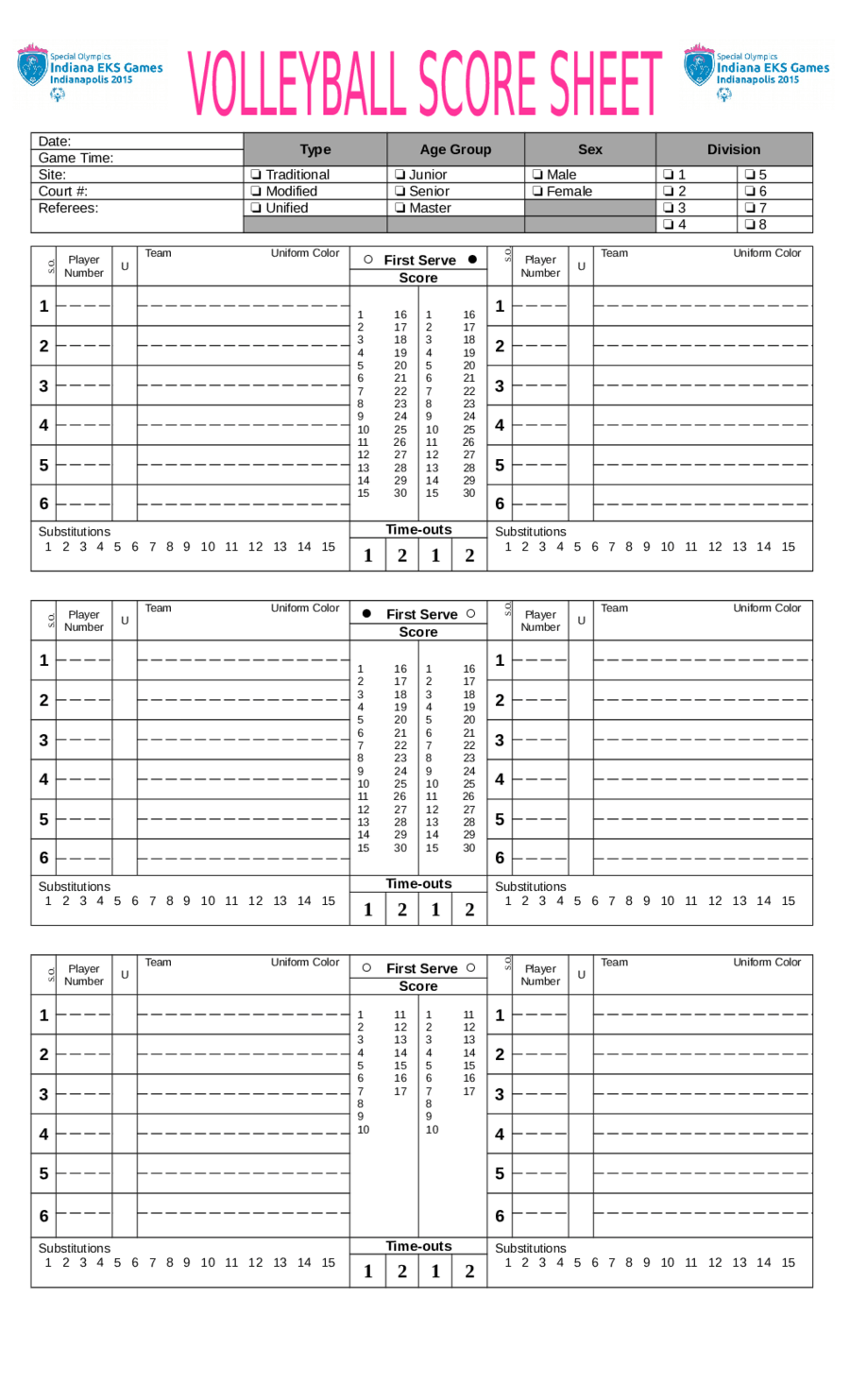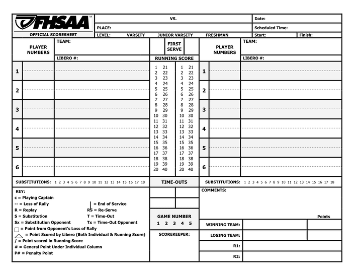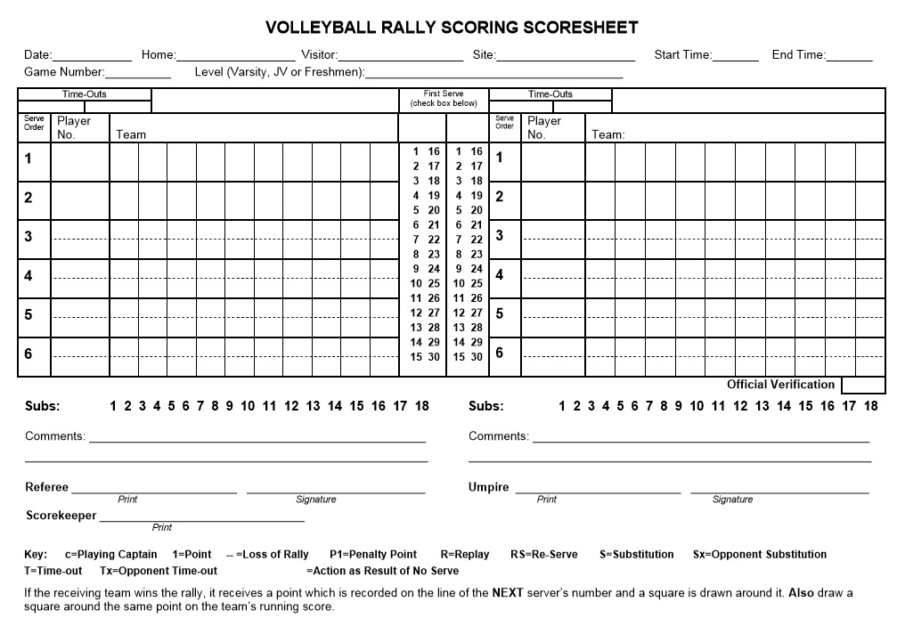 Printable Volleyball Score Sheet